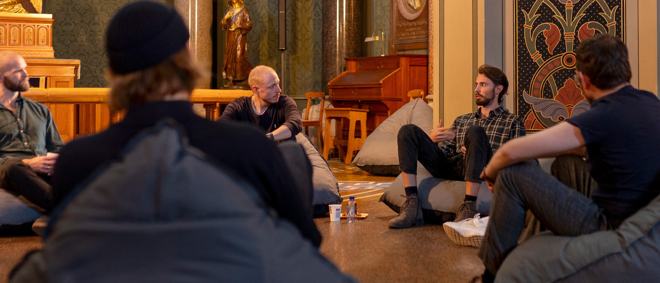 Med ’Samtaler for kommende fædre’ åbnes en helt ny sfære for mænd. Det at skulle være far afføder usikkerhed og utryghed hos mange mænd, og der er masser af tabuer og ømme punkter. Men mænd er ikke klar over, at det er meget udbredt at have tvivl, når kæresten er gravid. At tage disse svære samtaler kræver et trygt rum med højt til loftet. I bogstavelig forstand. “Faren og fællesskabet er centrale begreber i kristendommen, og derfor er det oplagt, at de her samtaler finder sted i kirkeligt regi. Men kirkerummet er også støttende. Her i Jesuskirken er der en særlig ophøjethed, synes jeg. Rummet er meget atypisk for danske kirker: mørkt og rigt udsmykket. Det bidrager til samtalen med en alvor, som er meget vigtig. Men faktisk er det noget af det blødeste, jeg nogensinde har været med til,” uddyber Eskil Zacho Steffensen og refererer til både scones og sækkestole. “Jeg tænker tit på de her sækkestole som Guds hånd; på, at når vi sætter os ned til de her samtaler, sætter vi os i Guds hånd, og vi kan føle os holdt og støttet.”
