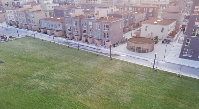 Kirkegrunden i Ørestaden står klar til en ny kirke. Foto fra Islands Brygges sogns hjemmeside.