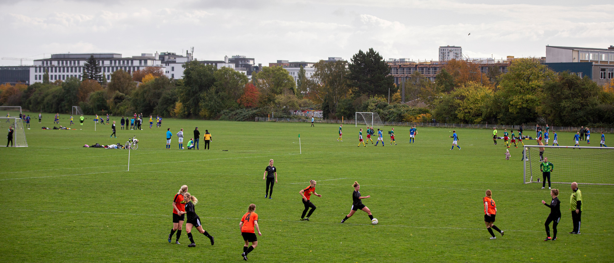 På Kløvermarken ligger der så mange fodboldbaner, at man ikke kan finde sit eget hold. Stop op ved hvilken som helst bane, du vil se det og høre det; afreagering af det indeklemte – der bliver råbt og skreget ord, ingen ville have sagt, lige inden kampen begyndte. Jeg har spillet med de sødeste, klogeste holdkammerater, de mest ansvarsfulde familiemennesker, og har set dem alle forvandle sig, skifte ham, fuldstændig opslugt af kampen. Alt andet forsvinder. Der er kun bolden, målene, to sæt trøjer og alle, der gør alt for at vinde. Men vi renser ikke bare det indeklemte ud. Det er mere end det. En gang om ugen er vi noget helt andet end det, vi ellers er. Nogle løber, nogle cykler, der er træningscentret og yogalokalet, nogle spiller med andre bolde. For at holde os i form, ja, men mest for at ramme det punkt, hvor vi glemmer os selv og bliver noget andet. Man knækker forover, hiver efter vejret og trækker det ind frit.