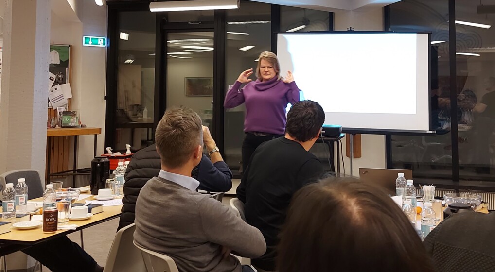 Maria Fihl, præst, fortæller om arbejde med at opbygge menighed for mennesker med international baggrund i Eliaskirken. Foto: Ulla Haahr
