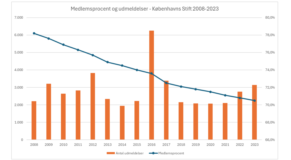 Medlemsprocenten i Københavns Stift