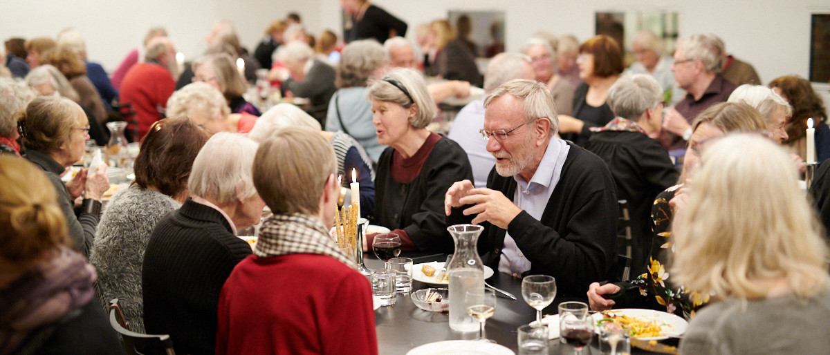 Vores fællesmåltid er udfordret af tidens restriktioner, men der skal meget til, før vi aflyser, for netop det at mødes er endnu vigtigere lige nu – særligt for dem, der ellers ikke mødes med så mange. Så vi holder endnu flere spisninger, end vi plejer, så vi kan dele os i flere hold, og vi sidder udenfor under pavilloner med varmelamper og behørig afstand, når vejret tillader det. Vi danser rundt mellem hinanden for at holde afstand og må planlægge i detaljer, men det giver god mening.