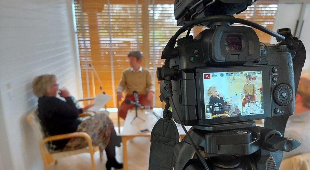 Øvelse på sidste års hvor Tine Gøtzsche, tidligere DR-vært, interviewer Jonas Lucas Christy, præst i Lindevang Kirke.