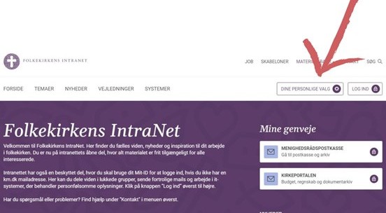 Hvis du allerede har besøgt FIN, men sprang over valget af indstillinger, kan du altid gøre det i toppen af forsiden under ”Dine personlige valg.” Her kan du selvfølgelig også altid ændre dine indstillinger.