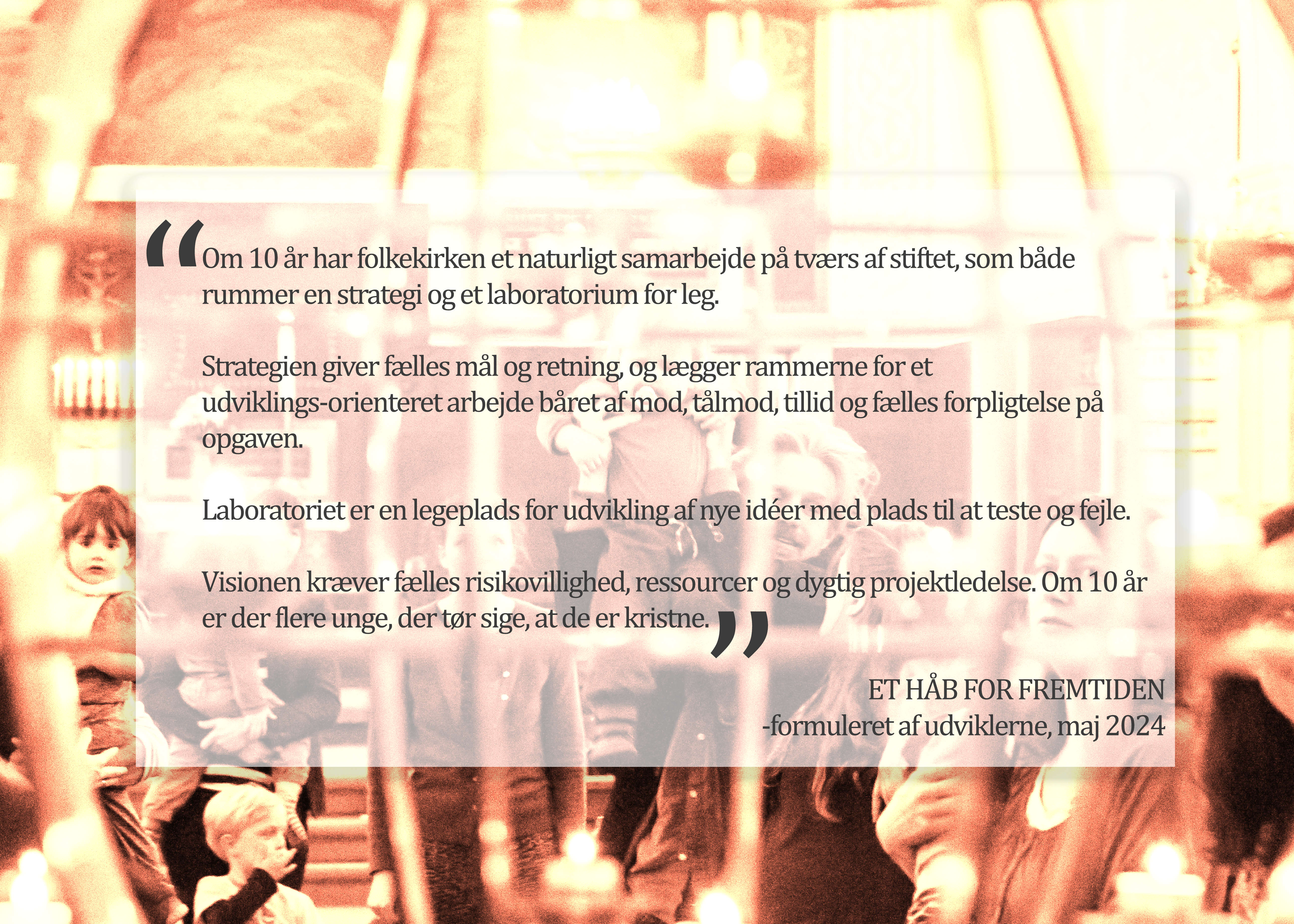 Om 10 år har folkekirken et naturligt samarbejde på tværs af stiftet, som både rummer en strategi og et laboratorium for leg.